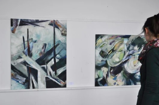 Gezeigt wurde eine Auswahl von meist großformatigen Acrylbildern, die sorgfältig geplante Kompositionen bis hin zu ausdrucksstarken intuitiven Farbspielen beinhalteten.