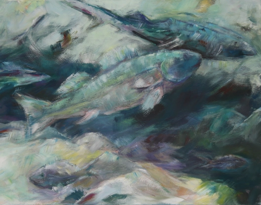 Nicht alles, aber die meisten Werke sind mit Acryl auf Leinwand gemalt.